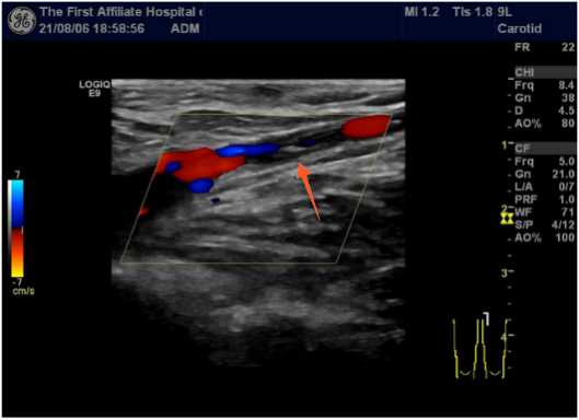 图2. 双下肢彩超:左侧大隐静脉根部及左侧股总、股浅、腘静脉血栓形成