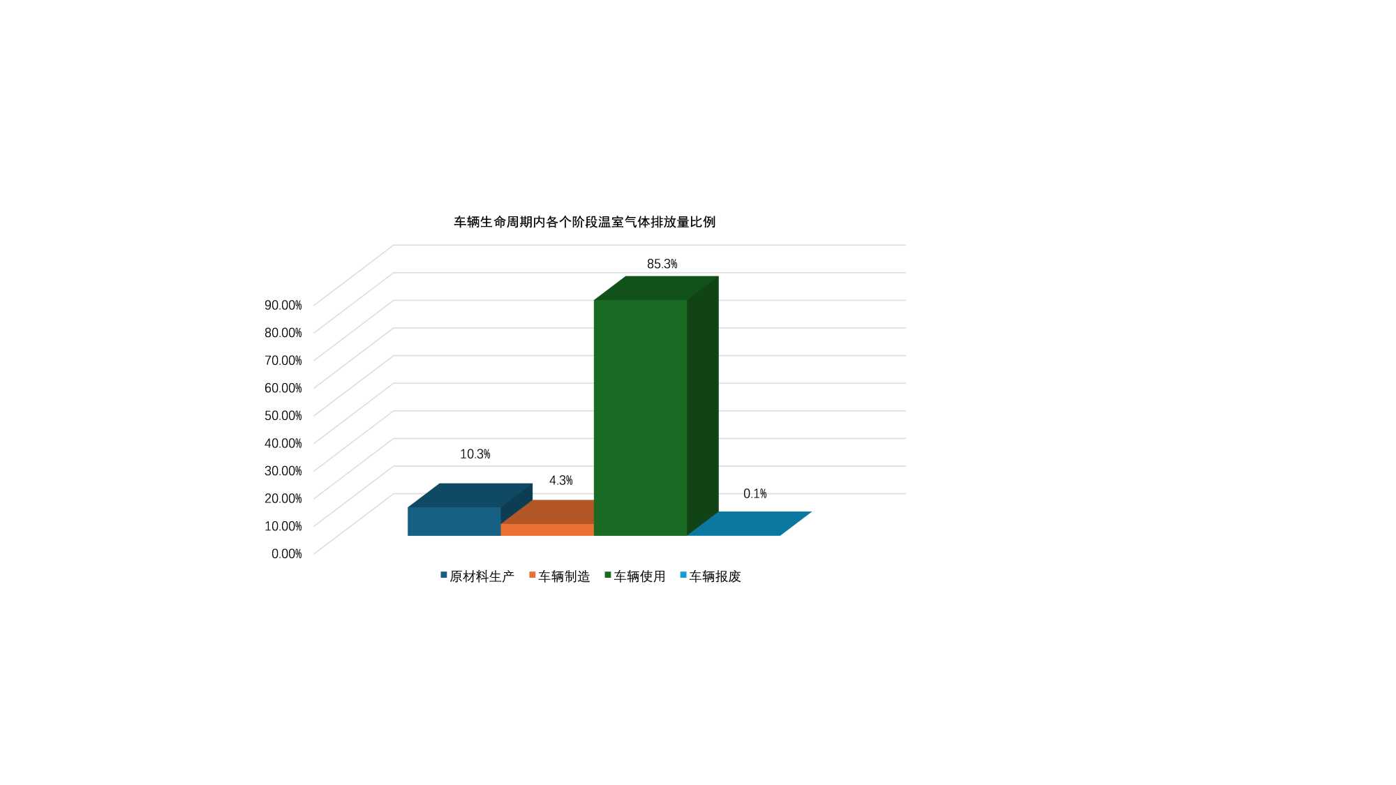 图1. 车辆生命周期内各个阶段温室气体排放量比例