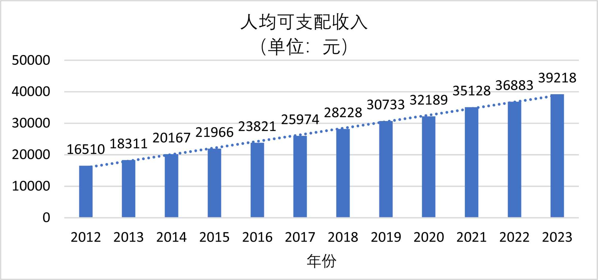 图1. 2012~2023年人均可支配收入