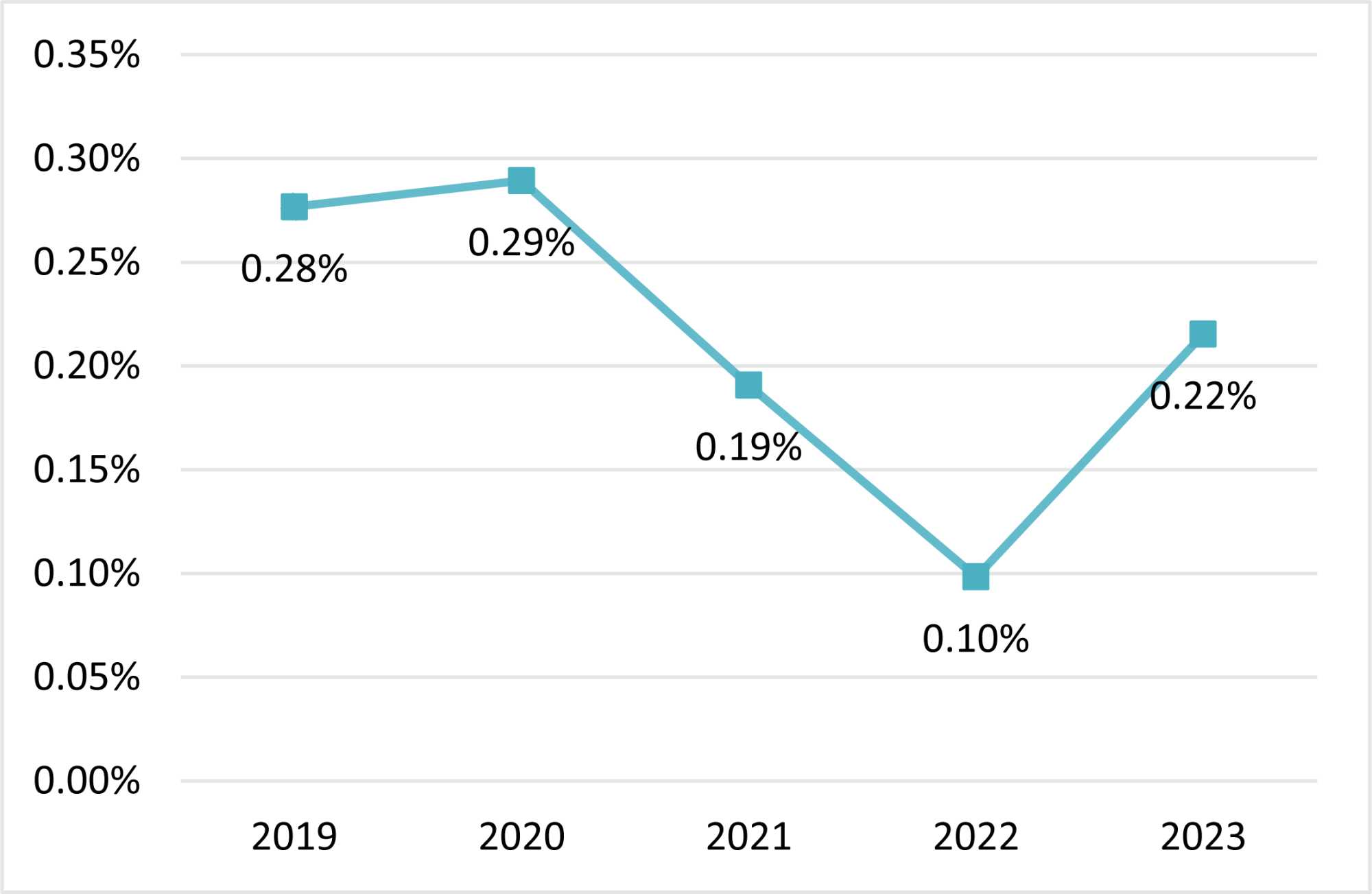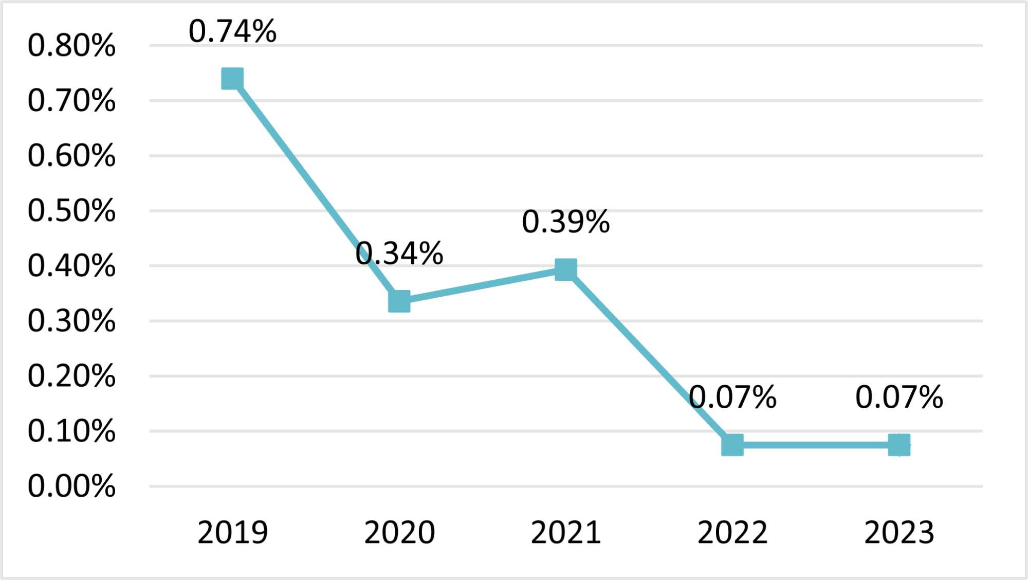 从创新产出成果的角度去衡量“新”,郭斌教授研究组选取了专利强度这一指标,旨在评价创新产出效率。通过研读文献,学者曹虹剑和张帅(2022)也采用专利来测度技术创新程度,他们指出了具体原因:专利的及时性更强,数据获取更方便,并可利用技术类别、专利申请人以及权利要求等数据进行深度和详细的企业创新行为研究,而且专利反映了创新产出的结果[12]。详细数据见图7