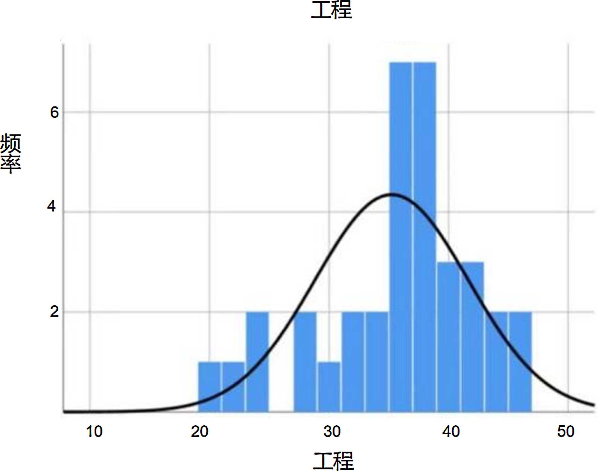 积木建构能力水平在12.0~12.5的最多,高于平均水平;工程技术能力水平在35.0~40.0的最多,高于平均水平;精细动作水平在35.0~37.5的最多,高于平均水平;问题解决能力水平在38.0~40.0的最多,高于平均水平;表征能力水平在22.5~25.0的最多,高于平均水平。详见图1~5。