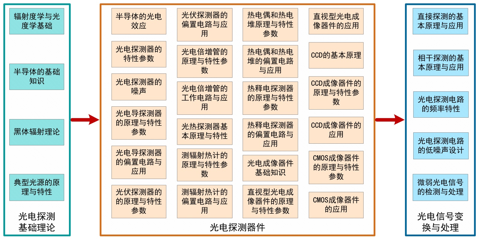 图1. 《光电探测与信号处理》课程主要教学内容