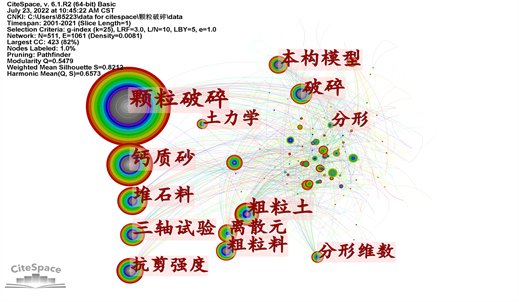 Figure 4. Knowledge map of key words of particle breakage from 2001 to 2021