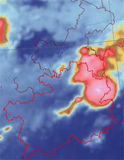 从红外云图上可以看出(图9),28日18时在重庆东部、湖北西部生成的对流云团逐步南压进入铜仁市北部沿河境内,松桃境内有小范围对流云团;19时对流云团持续东移南压,强度增强;20时再次南压增强,在沿河北部云顶亮温达到−66℃左右,松桃、印江、江口交界处云顶亮温达到−63℃左右,导致孟家屯等地1小时雨量到50毫米以上;21时对流云团整体继续东移南压,范围扩大,沿河地区强度维持,铜仁中东部地区强度继续增强,云顶亮温达到−66℃左右;22时对流云团继续东移南压,在铜仁范围内强度维持;23时云团略有减弱,仍在铜仁地区维持;29日0时云团亮温强度继续减弱,范围减小;01时对流云团逐渐消散,转为小雨天气,直至08时雨止转晴。