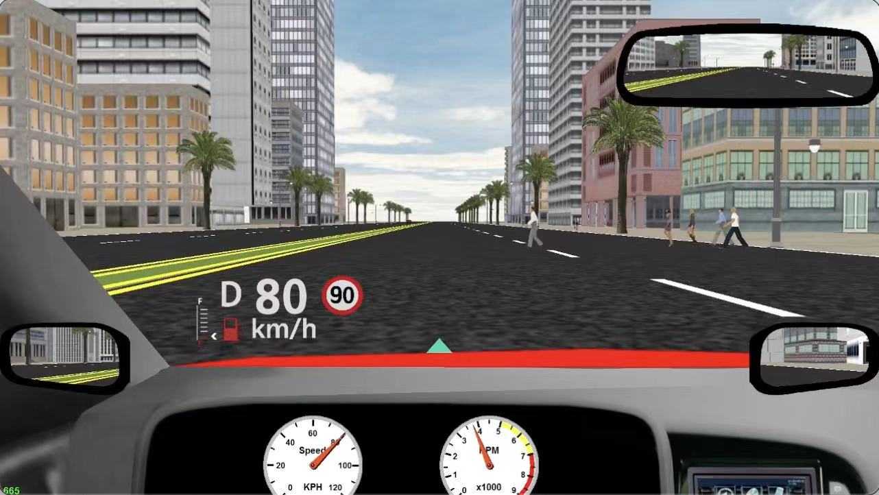 共构建16个实验视频,其中包含4个关键视频,12个干扰视频,每个视频持续30秒。关键视频中包含中央单个行人、中央多个行人、外周单个行人、外周多个行人等4类横穿马路的行人,每个视频中出现一类行人,生成4个关键视频。干扰视频中包含超速、闯红灯、过弯道、道路出现障碍物、前车刹车减速、前方车辆变道等6类事件,每类事件有2个视频,生成12个干扰视频。所有道路元素和道路事件都以随机的方式出现在道路上。对录制完成的视频材料进行后期处理,所有视频的挡风玻璃处均添加了五种AR图标信息,包含速度、油量、限速、档位信息、导航箭头,AR增强提示(有vs无)两组均包含16个视频,两组的区别在于:有提示组实验视频中添加了红色矩形增强框,用于增强提示各类事件,无提示组则未添加。实验场景如图1所示。