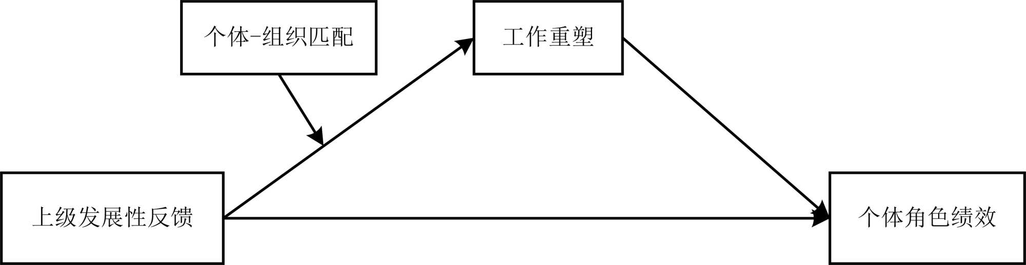 H4:个体–组织匹配正向调节工作重塑在上级发展性反馈与个体角色绩效之间的中介作用,即个体–组织匹配水平越高时,工作重塑的中介效应越强。