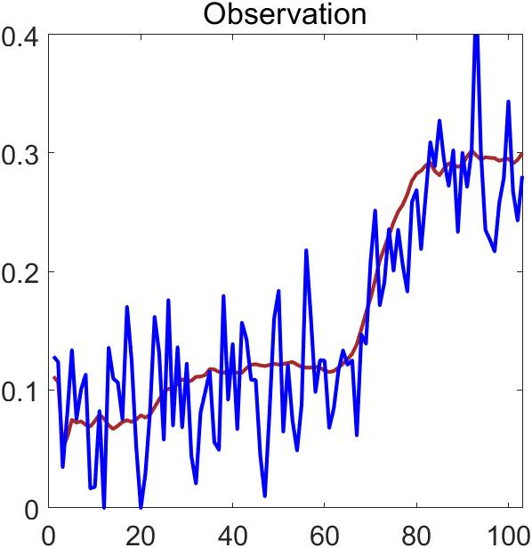针对上述问题,本文假设每个波段的噪声服从非对称高斯混合分布,构建一种基于非对称高斯混合噪声的矩阵分解(AMoG)模型,以便更灵活地拟合混合噪声。该模型的参数使用EM算法进行迭代更新。通过对模拟数据和真实数据的一系列实验结果,表明了本文方法在去除遥感图像的混合噪声方面的优越性。