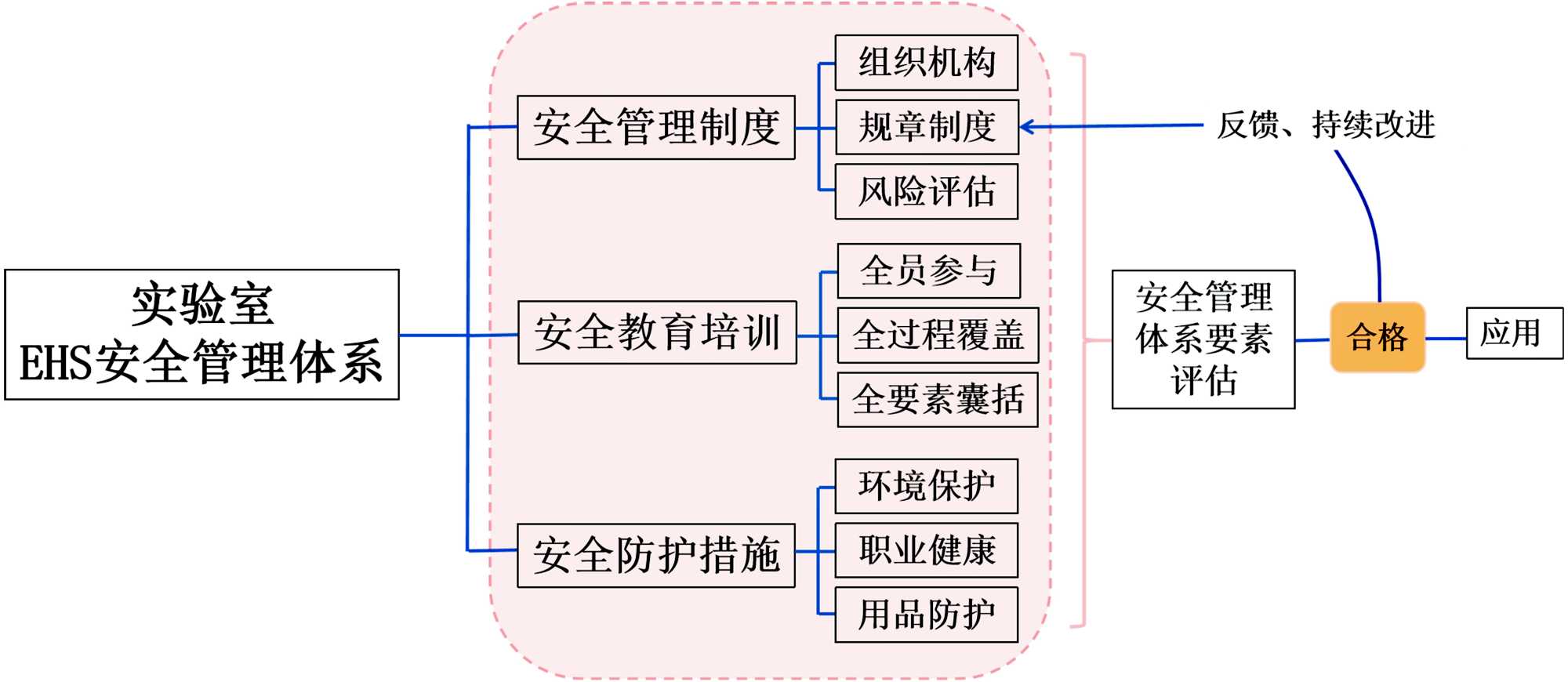 (2)“全程贯彻”要求将实验室安全教育从空间和时间全程贯穿整个学生成长成才过程。在空间维度上,确保使用实验室的师生从进入实验室到离开实验室的过程中,具备安全进行实验的知识和技能,以及能够正确识别、处理实验室内或周边可能存在的安全隐患的能力。从时间维度上,主要包括两个方面,一个是在校学习期间,在这个期间学生需要进行与EHS安全相关的理念的学习和在完成实验的过程中将EHS理念融入其中并指导实验的开展;另一个是毕业后进入社会期间,学生能够将“EHS”安全理念带入到社会和企业。