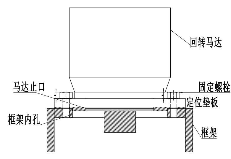 将回转马达与定位垫板组装,再将组装好的回转马达与定位垫板装入框架,通过紧固螺栓将马达、定位垫板、框架紧固在一起,见图5所示。