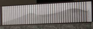 提取水元素运用在顶面以及立面装饰上,如:大堂吊灯,大堂吊灯采用水晶长条组合衔接悬吊,纹样依据海水浪花进行排列组合,富有流动感,水晶线条采用隐形钢丝串联,微风拂过后长条相互碰撞,发出美妙的韵律,就像浪花波动时发出的声音;吊顶,运用海水翻涌时高低起伏的形态进行设计,表达无论是多高的波浪始终是一个整体,不会四散飘零;在立面装饰上,提取涨潮落潮时的姿态,提取线条组合进行展现,体现生命的流动、延续(见图5)。