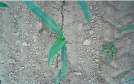 实验图像来自中国农业机械化科学院。在不同自然光照条件下,采集了玉米苗期2~5片叶子和杂草的图像。该数据集依赖于安装在农业机械上的阵列相机来连续捕获自上而下的图像。为了增加样本的复杂性,选择了两种数据集混合模式。第一类是晴天拍摄的玉米地图像。第二种类型包括阴天拍摄的图像,如图1和图2所示。由于使用阵列相机,收集到的图像部分重叠。因此,原始图像集中存在一些类似的图像。为了使训练过程有效,消除了没有杂草或玉米目标的图像以及几乎重复的图像,采用预处理使图像数据尽可能成为样本,再基于这些图像,建立了算法测试数据集。