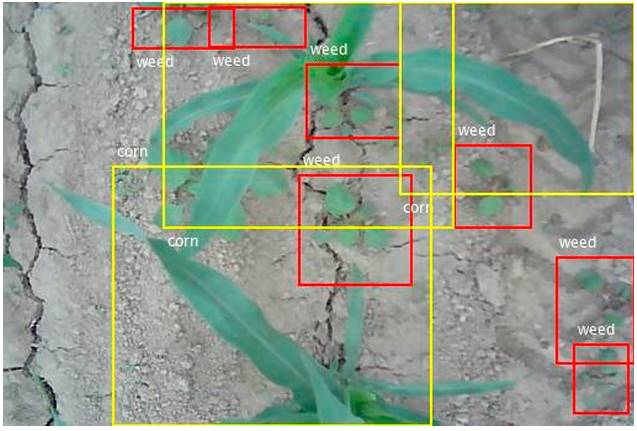 综上所述,当选择旋转不变LBP特征和GGCM时,平均精度最高,玉米幼苗和杂草的识别效果更好。实际图像检测结果表明,本检测方法在检测和标记杂草和玉米幼苗区域方面非常准确,它为变量喷洒或精确施肥提供了准确的位置信息。