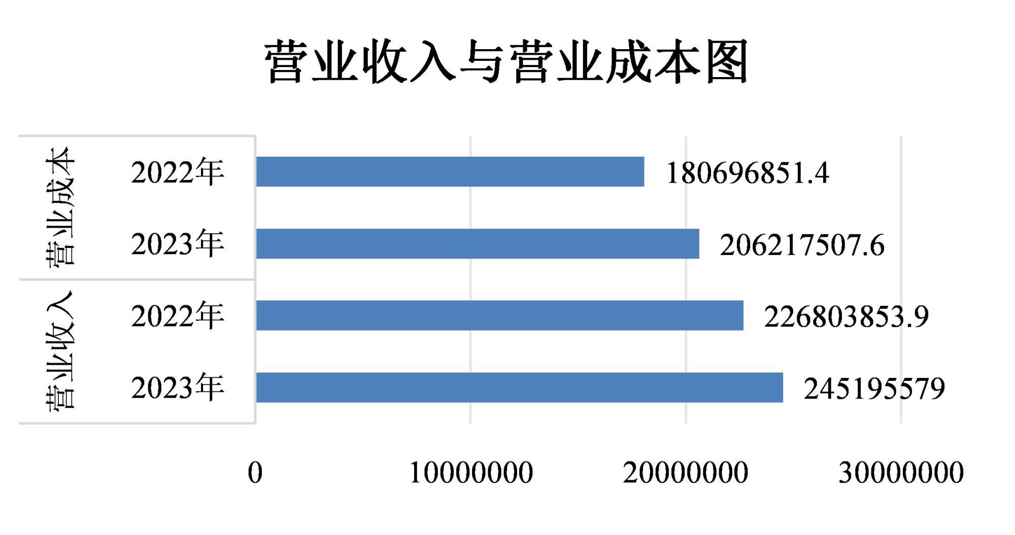 从图3主营业务收入和成本的变化情况来看,CY物流2023年主营业务收入净额为24519.56万元,与2022年的22680.39万元相比有较大幅度增长,增长了8.10%。2023年主营业务成本为20621.75万元,与2022年的18069.69万元相比大幅增长,增长了14.12% (详见图5)。公司主营业务收入和主营业务成本同时增长,但成本的增长幅度大于收入的增长幅度,说明公司主营业务盈利能力下降。