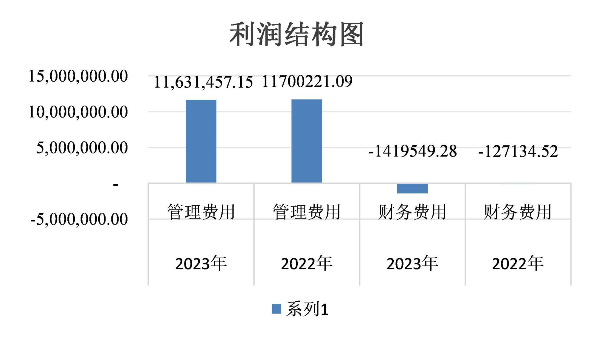 CY物流2023年管理费用为1163.14万元,与2022年的1170.02万元相比降低了0.59%。2023年随着管理费用有较小幅度的降低,公司经营业务的盈利能力水平有所下降,管理费用支出属于正常,应该关注其它成本费用支出项目过快增长的情况。CY物流2023年财务费用为负141.95万元,与2022年的负12.71万元相比成倍上升,上升了11.16倍(详见图6)。