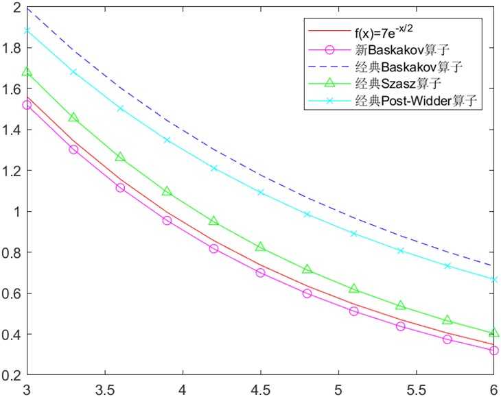 图2. 新Baskakov算子对函数