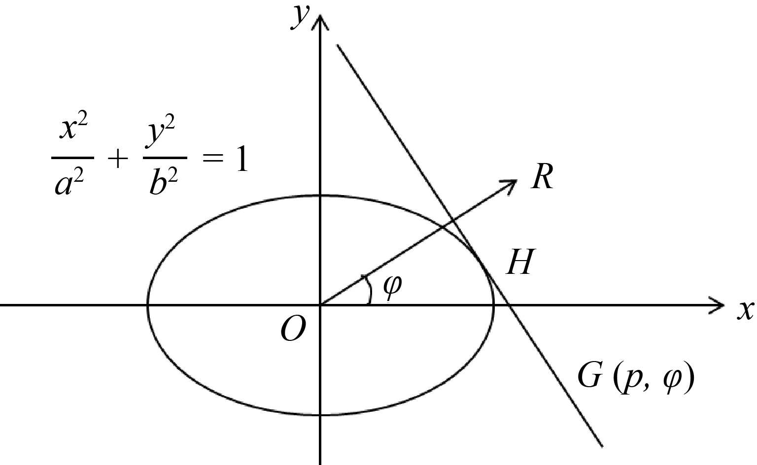 定义1 [2]在平面上任意选取坐标系xoy,自原点O引射线OR,作垂直于OR且与C相遇的任一直线