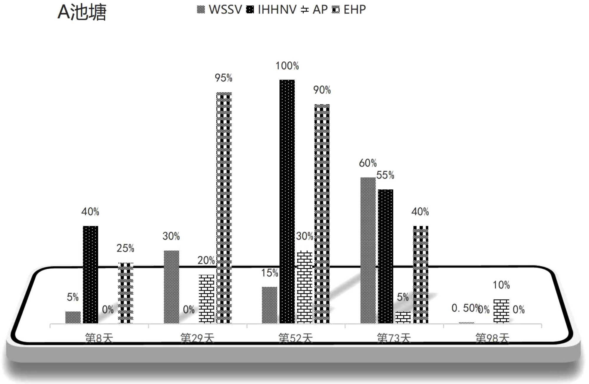 Figure 1. Detection rates of 4 pathogens in 5 ponds of Litopenaeus vannamei aquaculture cycles