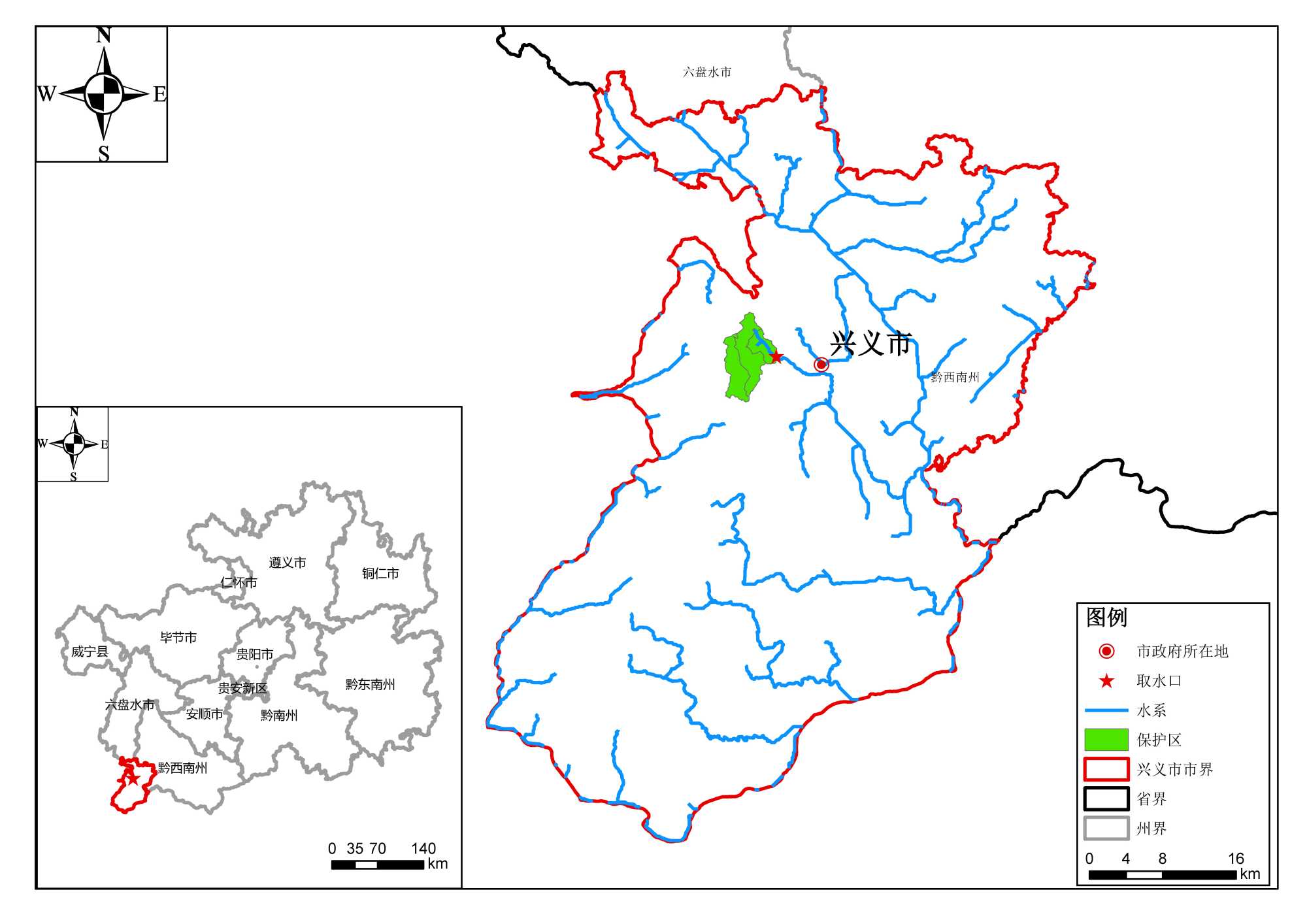 图1. 兴义市兴西湖水库集中式饮用水水源地位置示意图