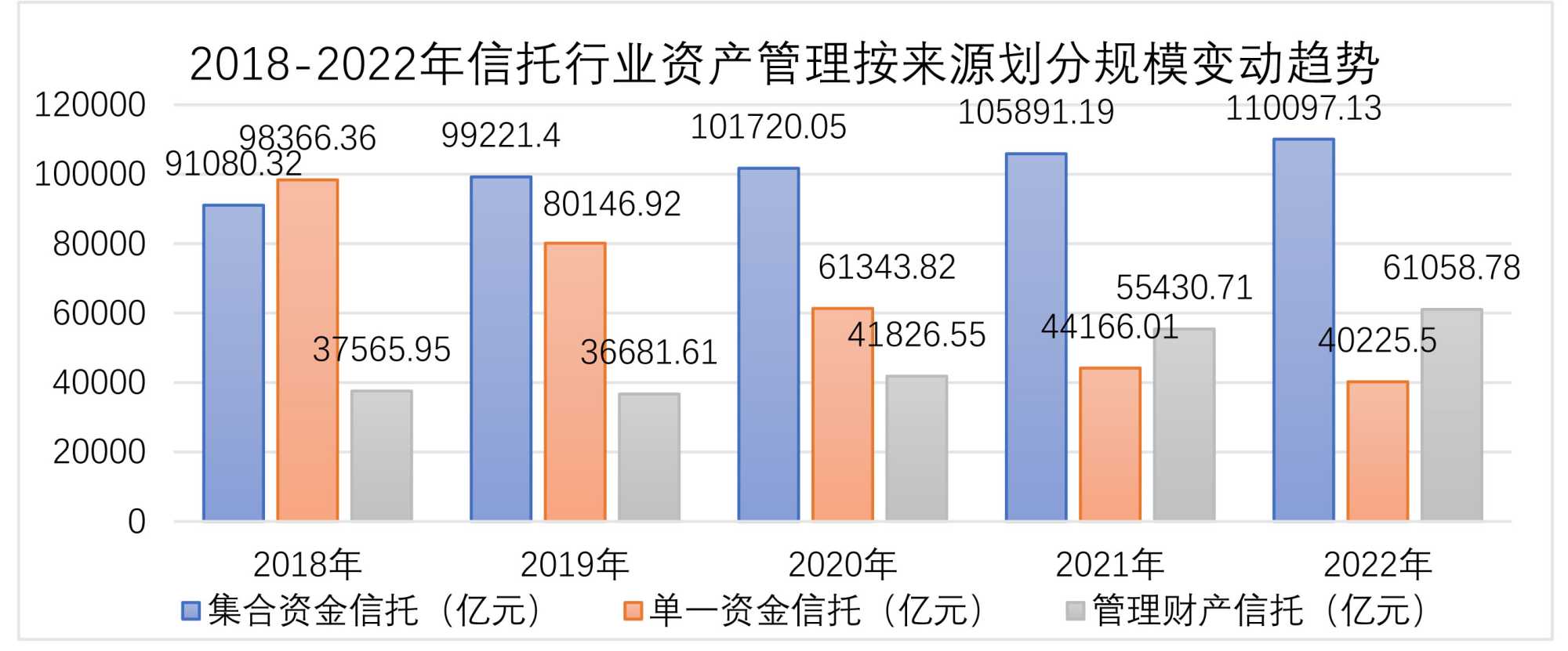 Figure 2. The trend of asset management in the trust industry by source from 2018 to 2023