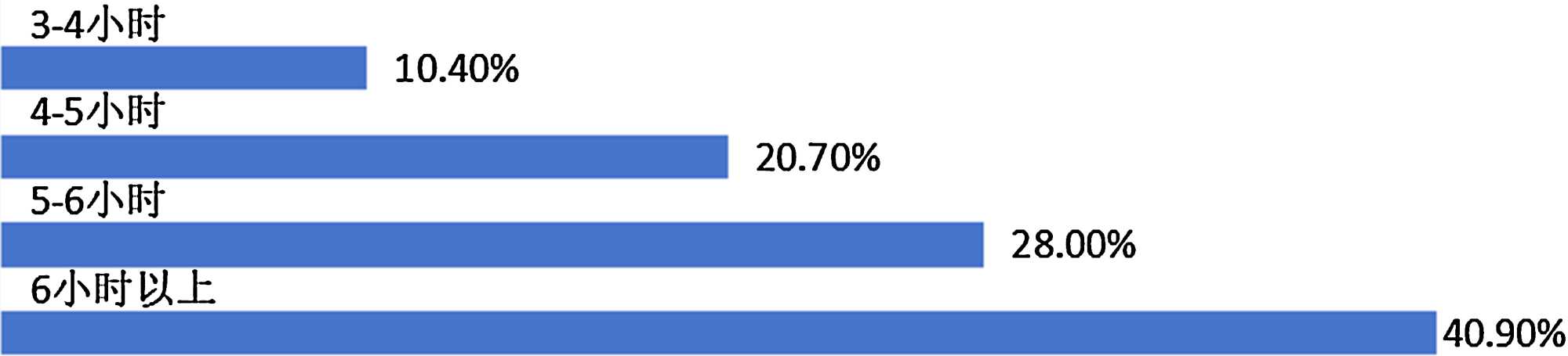 中职学生每天花费在手机上的时间普遍较长,存在过度使用的现象。图3调研数据显示,超过60%的学生每天使用手机时长超过5小时,其中40.9%的学生甚至使用6小时以上。长时间使用手机不仅会对学生的视力造成损害,还可能影响他们的作息规律和睡眠质量。这可能与学生对手机的依赖程度较高、缺乏足够的自我管理能力以及学校或家庭对手机使用管理的不足有关。