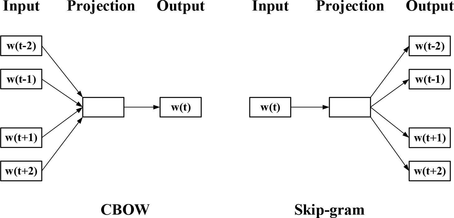 Tomas Mikolov等提出的Word2Vec模型[25]是用于生成词向量的高效模型,它可以从大量文本中捕捉单词间的语义关系,该模型的两种主要实现方式为连续词袋模型(CBOW)和Skip-gram模型,如图3所示,前者根据上下文来预测目标词,常用于在小规模数据集中学习频繁的词汇;后者根据目标单词来预测上下文,用于学习罕见词汇,能够很好地处理低频率的单词,常用于大规模数据集[26]。