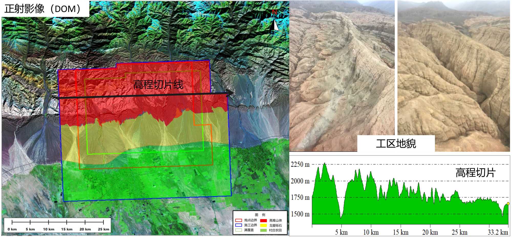某三维勘探项目位于库车坳陷北部构造带,南部进入阳霞凹陷,施工面积达971.02 km2。如图4所示,工区北部山体高大、沟壑纵横。属于典型的山高难山地,海拔高程变化大,复杂山体区切割剧烈。给地震勘探物理点部署和采集施工带来了巨大的挑战。