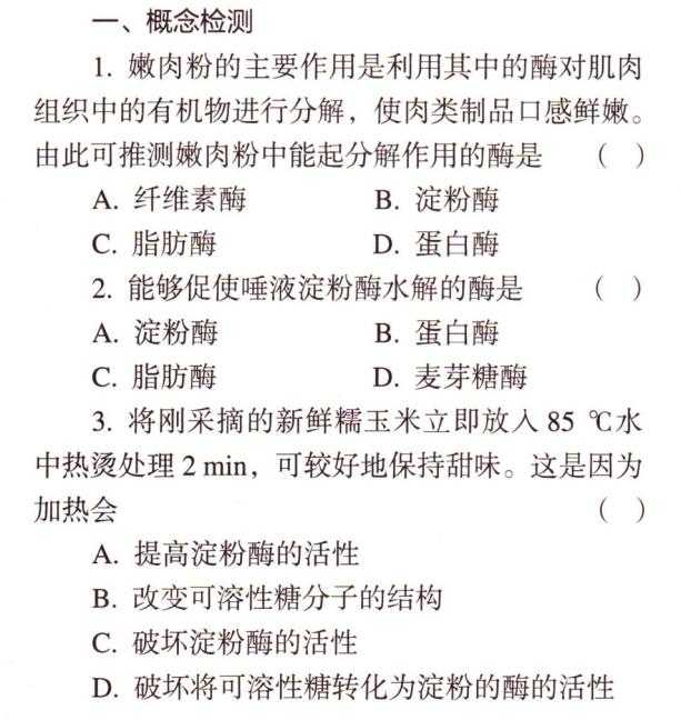 图6. 苏教版必修一第80页《生命活动需要酶和能源物质》课后习题
