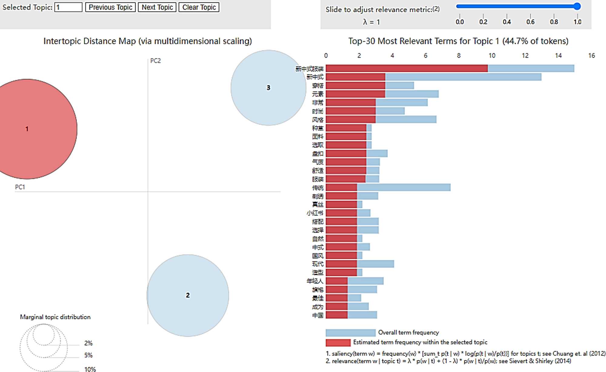 Figure 6. LDA theme mining visualization analysis of new Chinese-style clothing features
