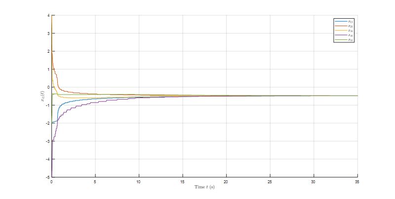 图7. 智能体在协议(17)、(18)下第一个分量的状态轨迹
