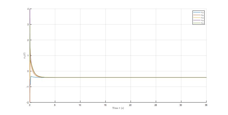 图4. 调整自适应参数后智能体在协议(3)、(4)下第一个分量的状态轨迹