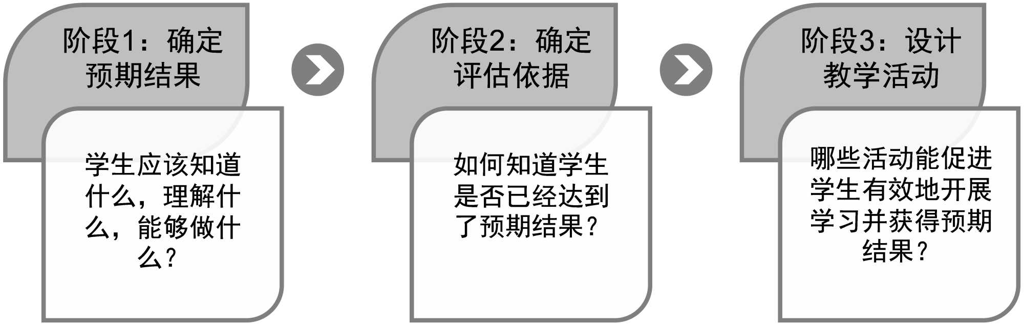 如何有效促进教学、学习与评价的有机整合呢?吴晗清等人认为,在教学设计时教师应当以教学目标为核心,预先确定评价标准和任务,并根据这些要素来构思以目标为核心的教–学–评活动,在评价过程中,不断审视目标的达成情况[12]。上述过程与逆向教学设计的核心理念相契合,因此,采用逆向教学设计的思路来设计教学过程,能够有效推动“教、学、评”三者之间的深度融合与一体化发展。