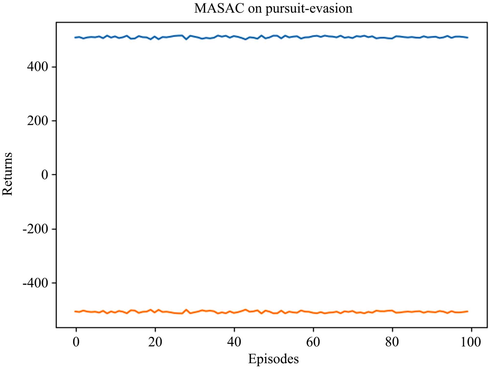 本文面向不完全信息下的平面1追1追逃博弈场景进行研究与分析,创新性地提出了一种基于SAC算法的改进多智能体强化学习算法,该算法通过对博弈场景进行建模,并基于距离的变化率设计奖励函数与支付函数,利用MASAC算法进行中心化训练,得到追逐者无人机和逃避者无人机各自的最优混合策略参数。仿真结果表明,该方法能完成无人机在不完全信息下的追逃博弈,且具有较强的泛化适应能力,有效的实现了博弈的目的,为求解不完全信息的微分博弈提供了一定的参考意义。尽管MASAC算法在多智能体任务中表现优异,但在实际应用中仍存在以下局限性:由于要训练多个网络,对计算资源要求较高;MASAC的收敛速度受超参数的影响较大,需根据具体任务调整;模型对观测值质量的依赖较高,当观测噪声较大或信息严重丢失时,算法性能可能显著下降。