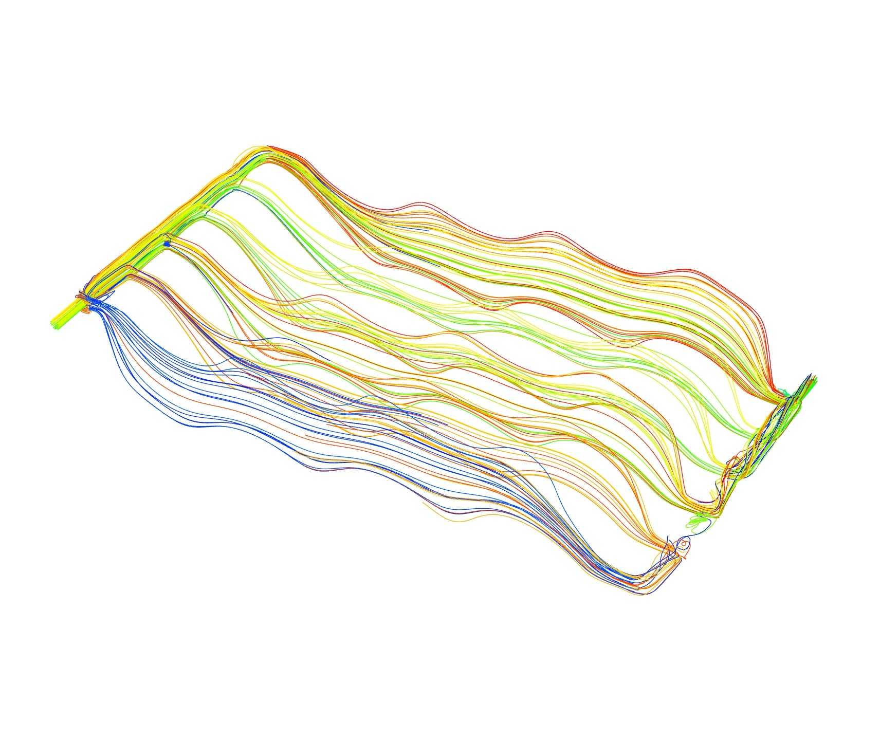 本文采用了Space Claim对5节116 Ah平行并列分布的方壳锂离子电池,以及基于上下交错式曲线型流动的并联分流浸没式冷却电池模组进行了数学建模,并采用了Fluent对电池模组以2C倍率放电进行了散热仿真分析。可以得到以下结论。