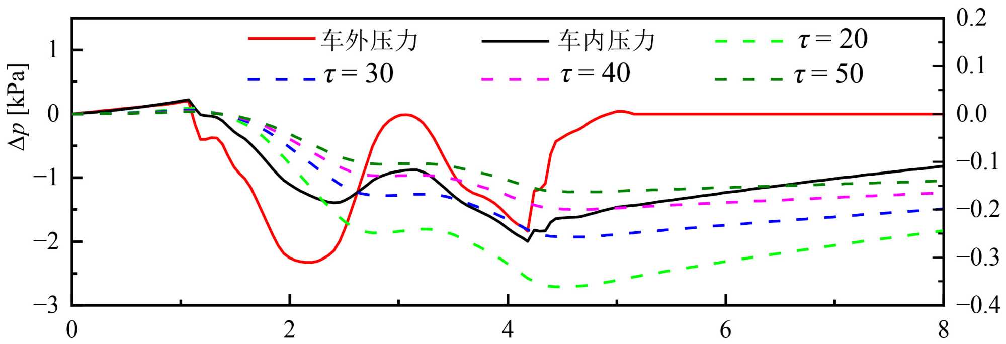 基于图1时间常数物理模型[16],欧标EN14067-5给出了动态条件下车内压力计算方法