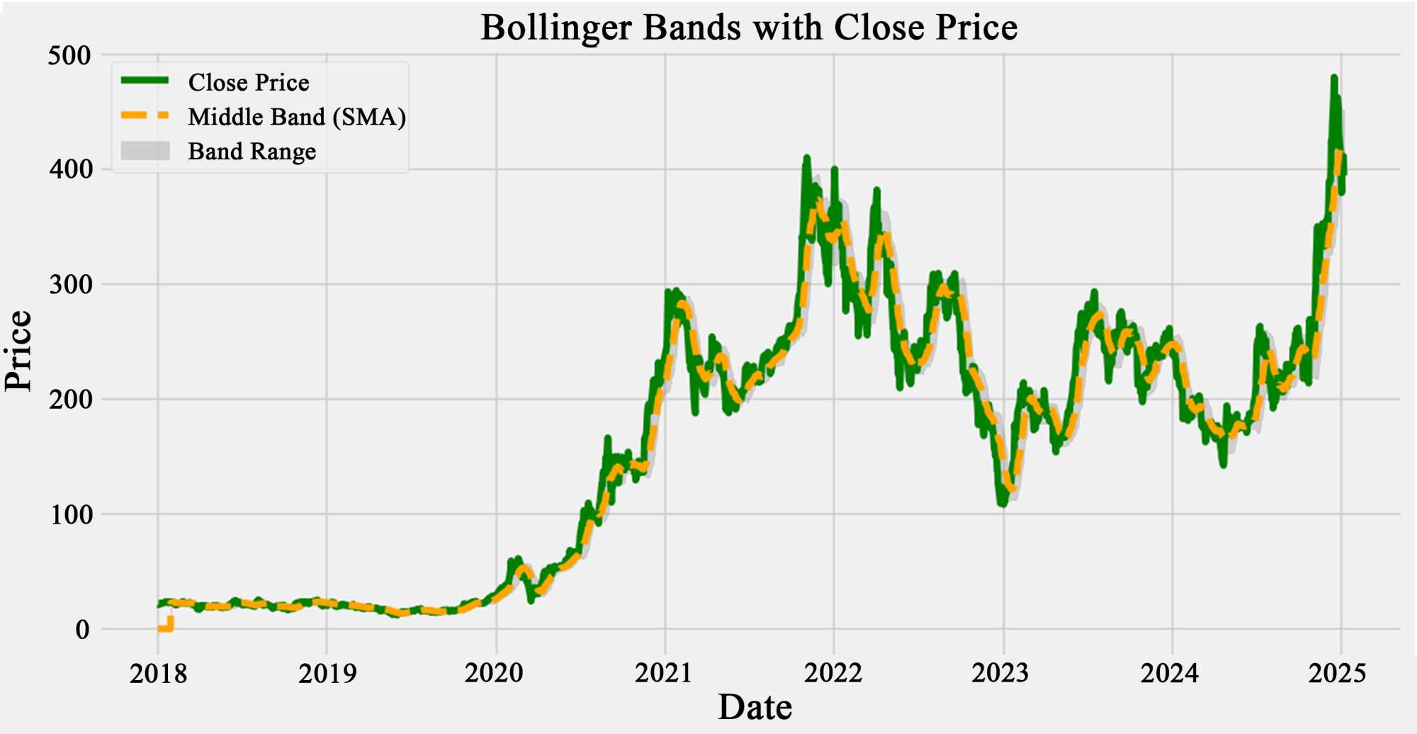 Figure 9. Bollinger bands with close price