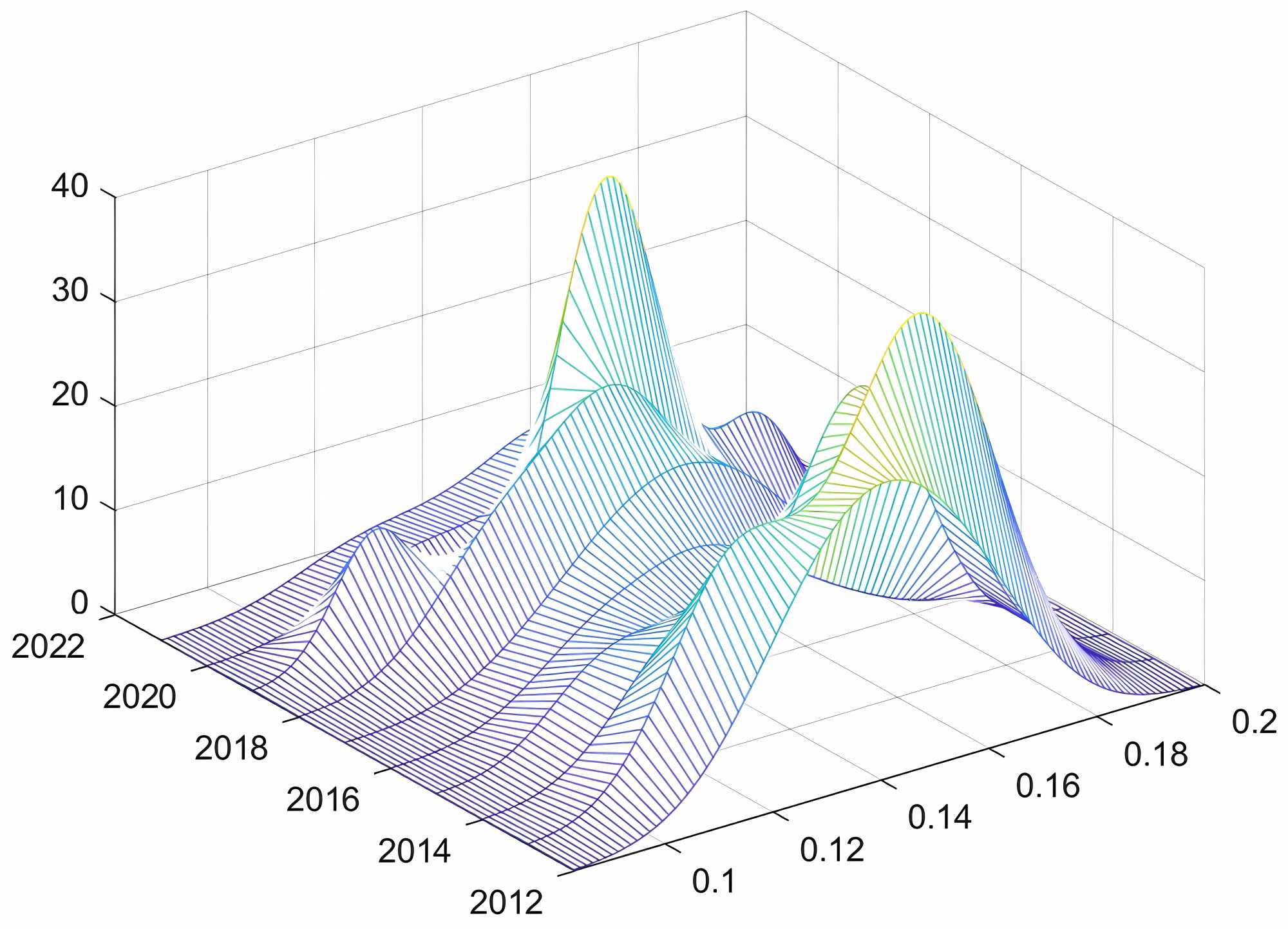 Figure 3. Kernel density estimation map of the national manufacturing high-quality development index