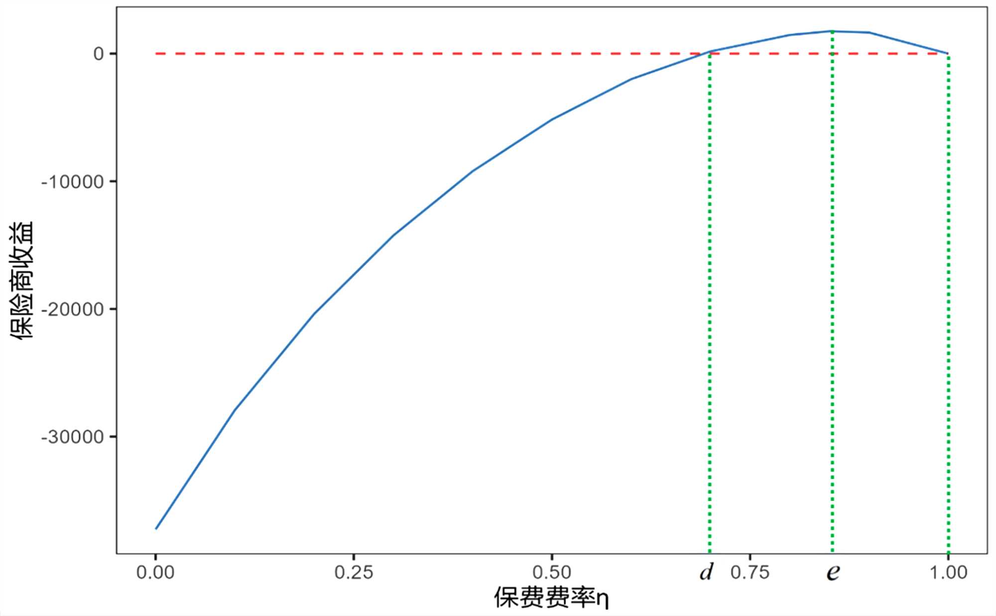 中,随着费率的升高,投保意愿和保险商的收益均会下降,因此尽管此区间依旧可以实现三方共赢,但在现实生活中保险商并不会将费率指定在此区间内。保险商可以权衡自身收益和市场份额,综合考虑后选择一个介于e和d之间的合适的费率。此外,本文中保险公司只承保了一家企业,但在现实中保险商会有大量的投保客户,客户之间同时发生损失的概率相当小,因此现实中保险商的收益可能会比本文模拟的情况要高很多,其可接受费率区间范围也可能会更大。