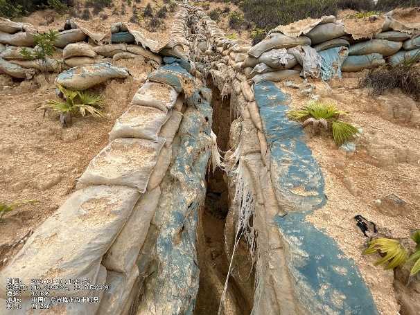 1) 生态袋材料在完工后2年~3年将出现不同程度的破损,以截排水流为主的生态袋结构,常常出现沟壁或沟底侵蚀、进而结构失效的情况;当坡面坡度大于25˚时,生态袋纵向排水渠损坏案例较多。因此建议生态袋截排水渠的使用年限不大于3年,纵向排水渠的适用坡度小于25˚。坡度大于25˚坡面的纵向排水宜采用混凝土材料,减少后期管道水毁及水土流失的风险。