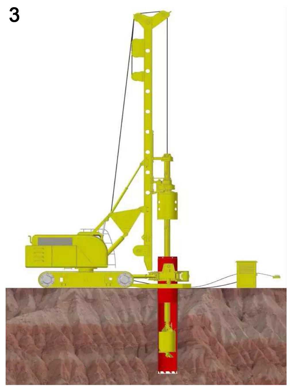 旋挖钻搓管全护筒跟进法在施工中相应的关键步骤用下图1~7进行表示。