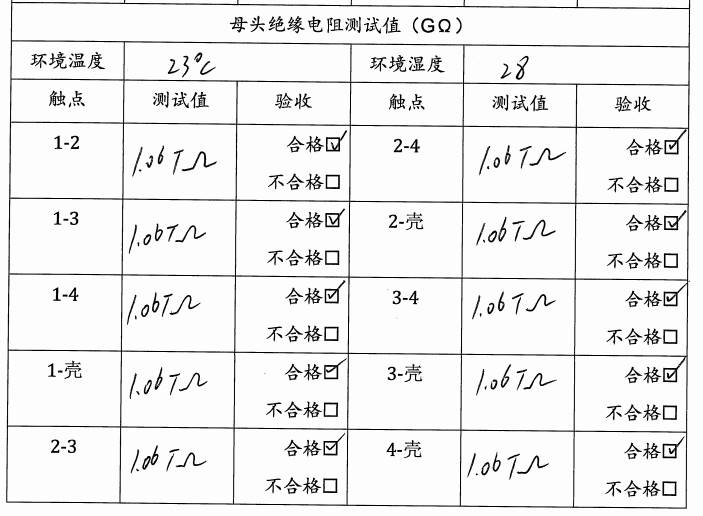 图14. 实验室压力下连接器绝缘电阻测量记录