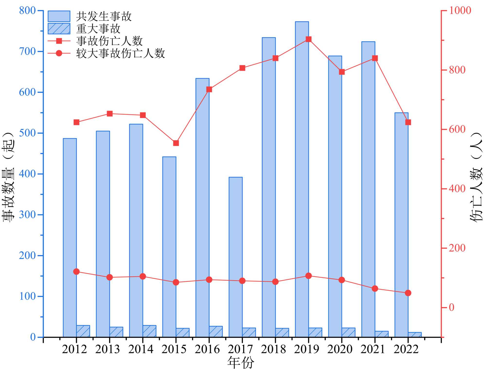 Figure 1. 2012~2022 project safety production accident statistics chart