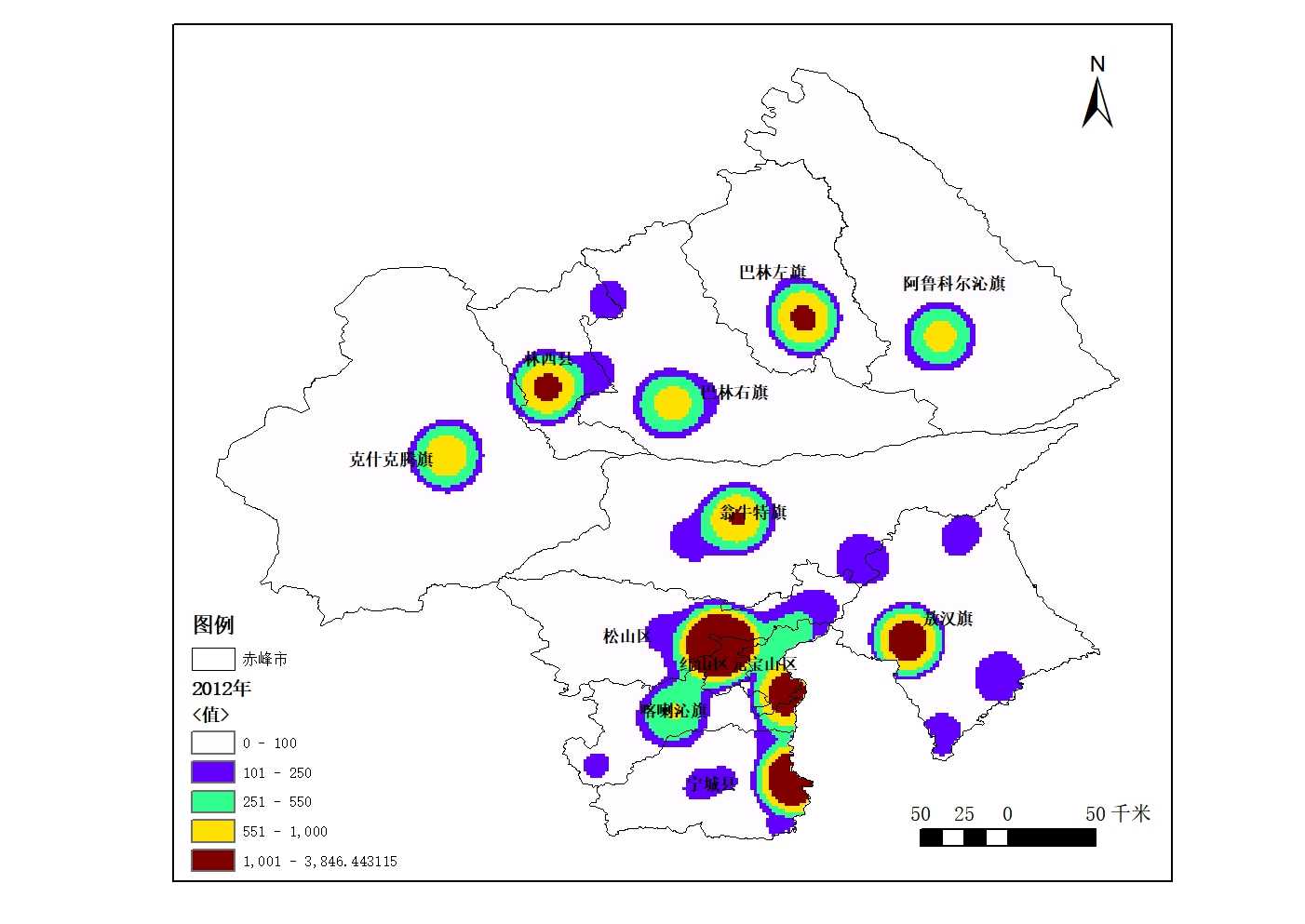 (1) 研究期间,赤峰市土地供应规模呈现出一种波动上升的变化态势。土地供应呈现出由中心城区逐步向周边地区扩散的趋势。