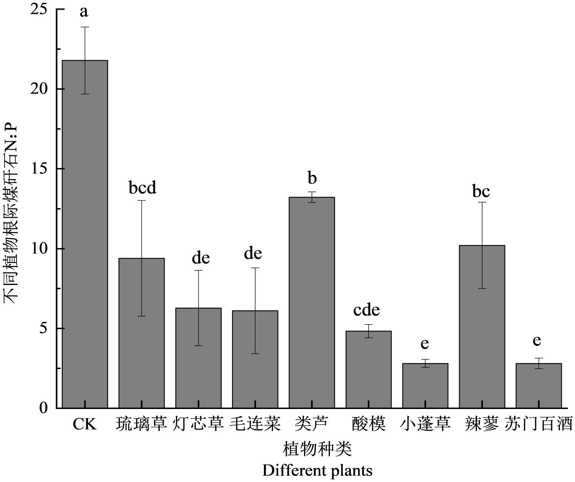 Figure 10. Rhizospheric coal gangue N:P ratio across plant species