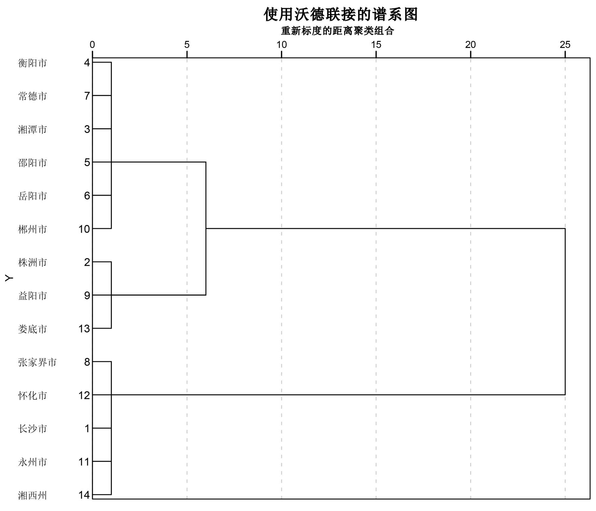 图1. 根据14个地州市综合因子得分得到的聚类谱系图