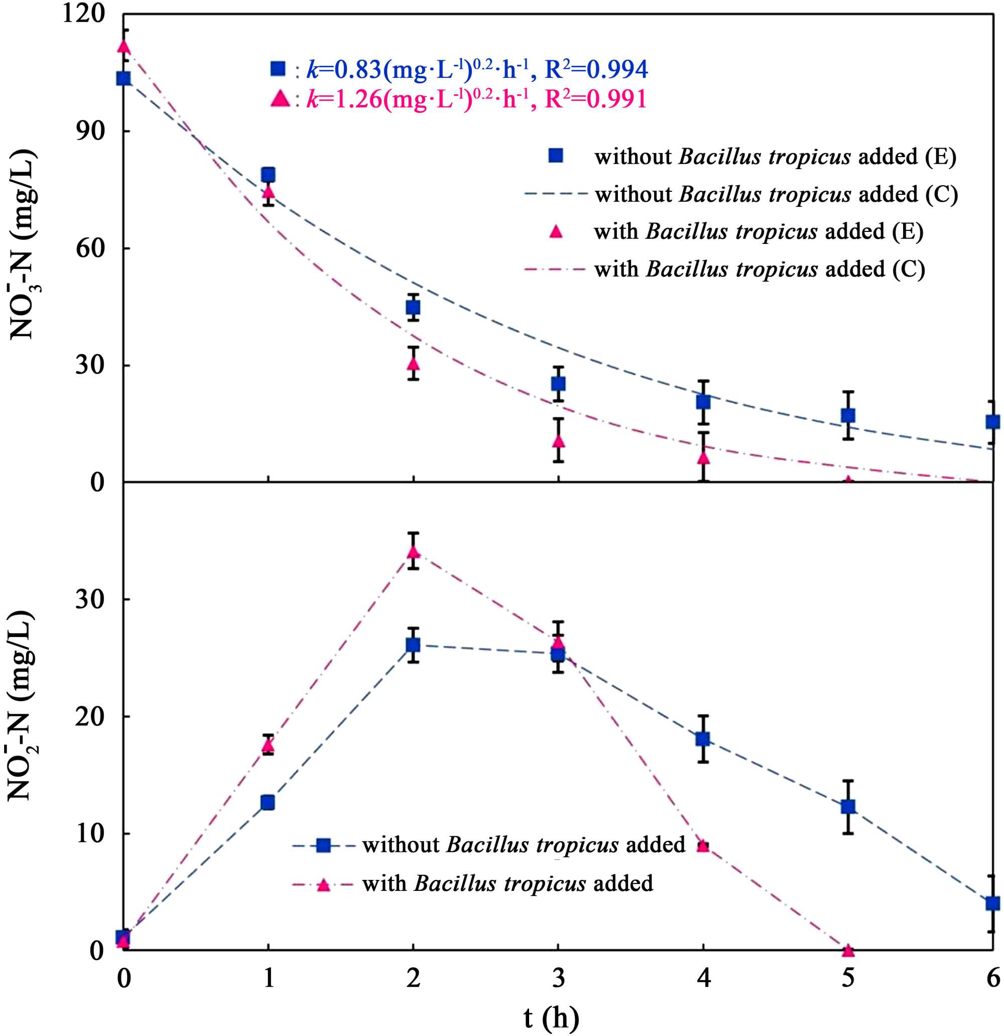 图2. 加入和不加入Bacillus tropicus菌进行反硝化速率的比较