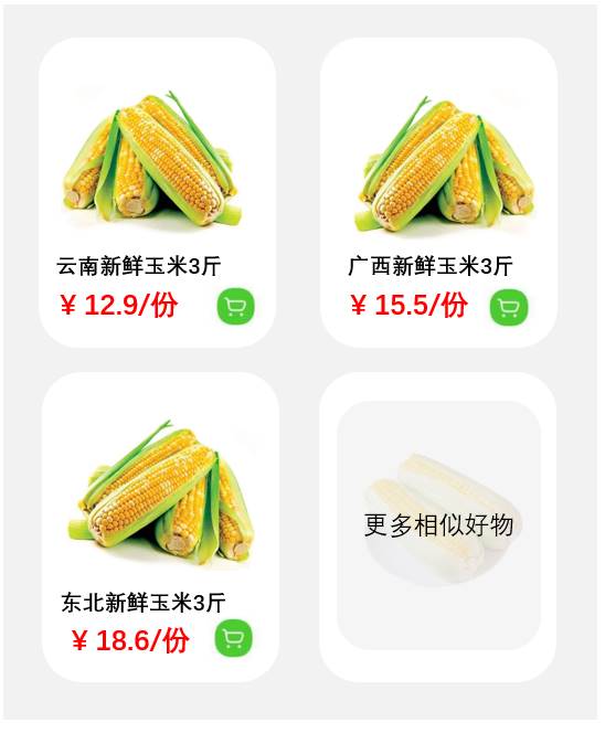 在实验产品的选择上,实验3选用玉米作为实验产品,将推荐信号依次呈现在低价格、中价格和高价格的缩略图下方,具体实验材料图如表9所示。