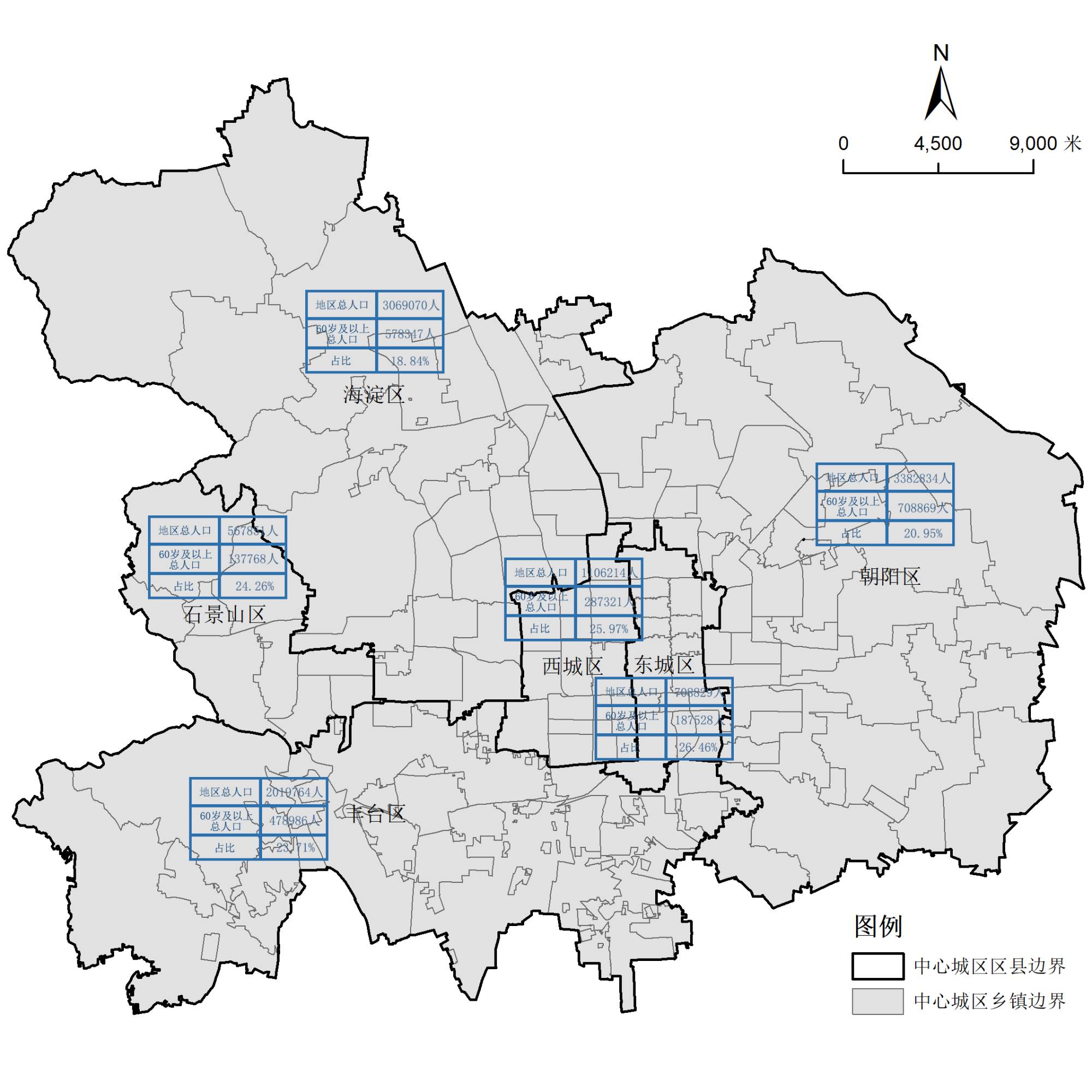 图2. 北京市中心城区的地理位置与行政区划