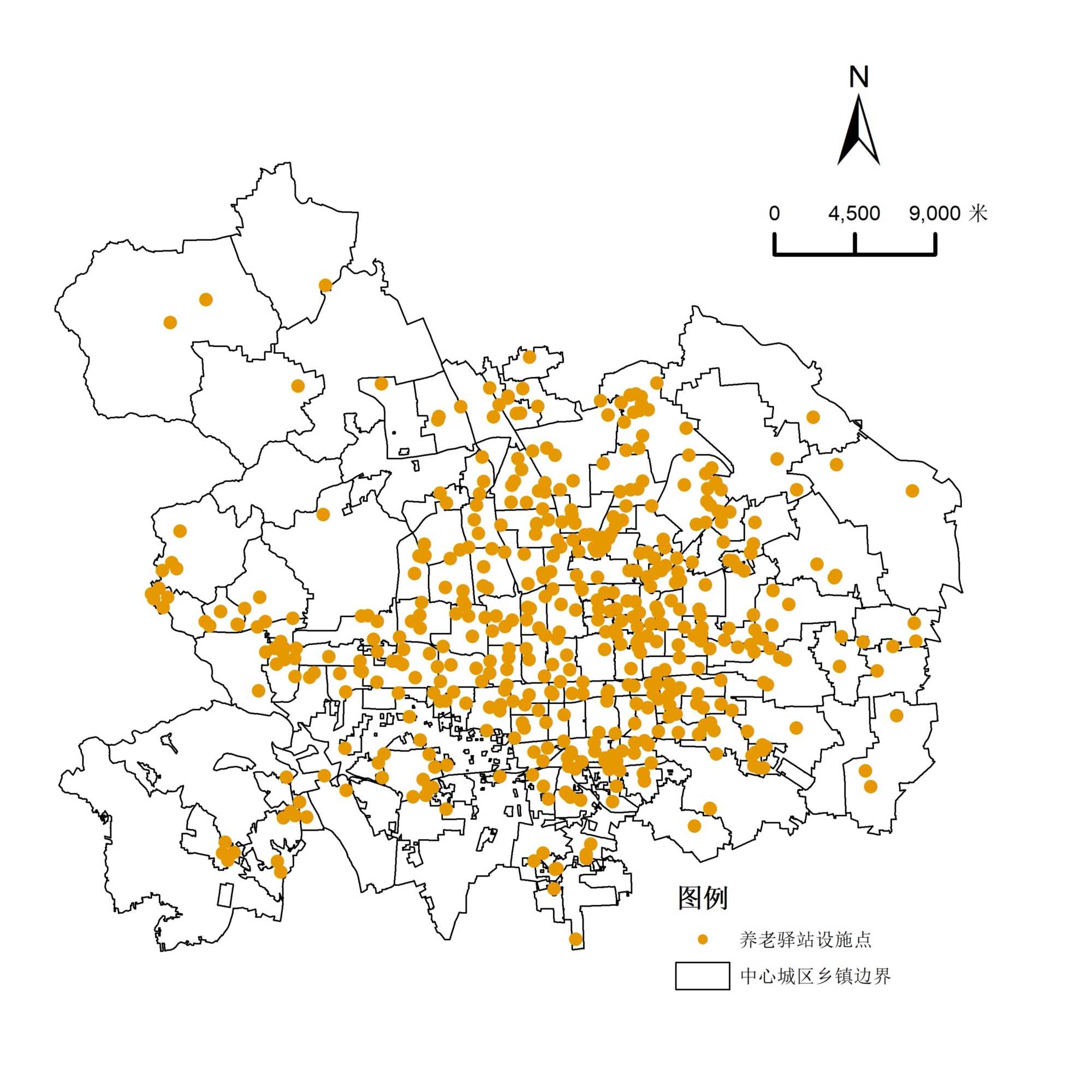 然而,现有研究大多聚焦于综合医院、三级医院等大型医疗设施的空间分布及可达性,专门针对社区卫生服务中心(站)的研究相对较少。同时,对养老资源的研究多集中于养老院等机构养老资源,而对社区养老资源(如社区养老驿站)的定量化研究较为匮乏。因此,为解决人口老龄化背景下老年人对社区医疗与养老服务的叠加需求问题[27],本研究以北京市中心城区为研究区域,探索社区医养资源的空间分布特征及可达性,旨在为社区医养资源的高效配置提供科学依据,并为多层次养老服务体系的建设提供政策建议与参考,并进一步为其他大城市与超大城市社区养老提供新思路。