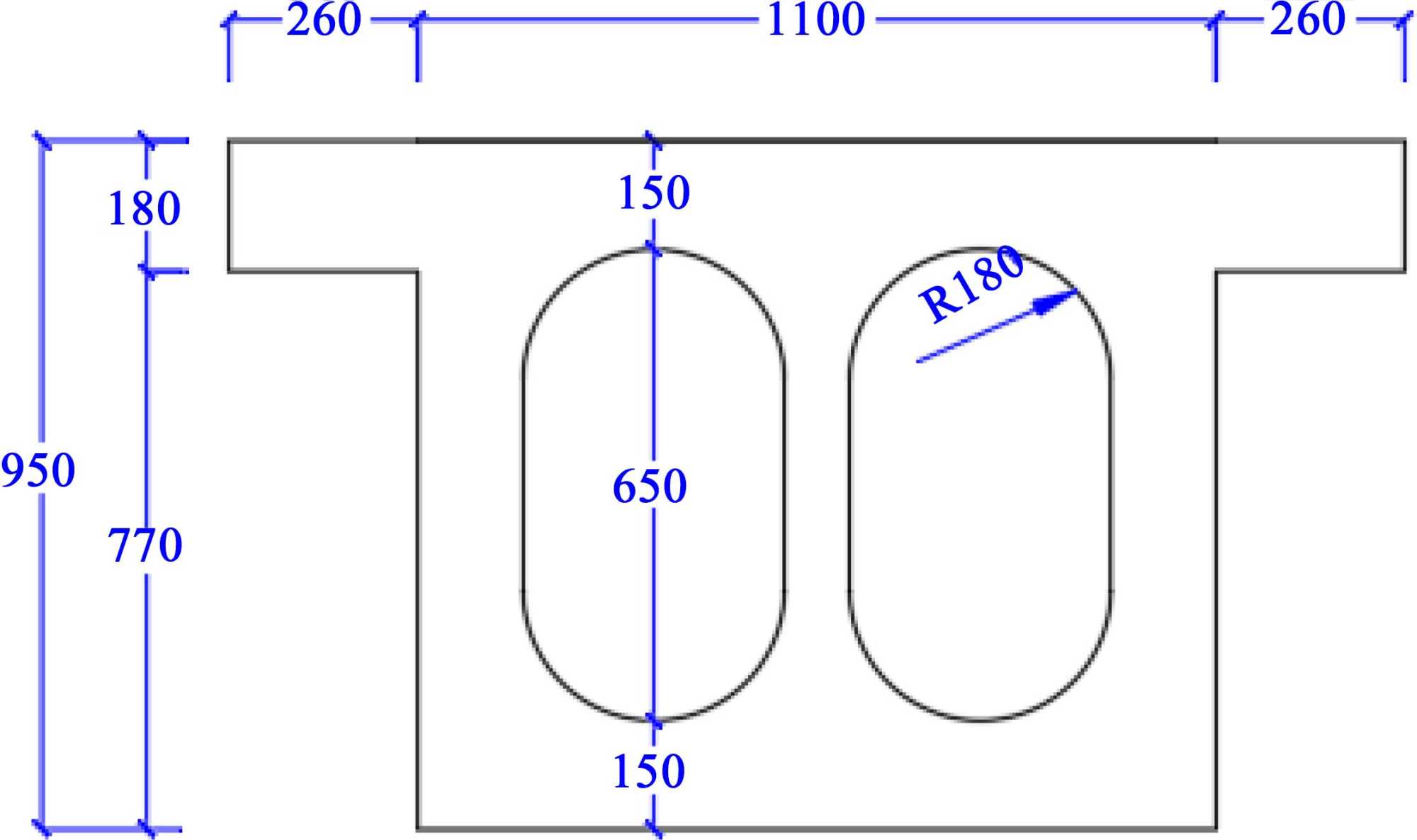 空心板桥是小跨径钢筋混凝土桥中最常用的桥型之一,其优点是桥梁高度小,外形美观节约,制作方便,施工便利,但缺点是跨径不建议设计太大,也不宜采用连续梁桥的设计[1] [2]。Guo等人[3]发现铰链连接梁模型的局限性在于,当板截面的旋转中心发生变化时,刚度系数的值也会发生变化,对横向荷载分析系数的计算影响较大。Kong等人[4]基于刚接梁法提出一个经验公式用于多箱型桥梁的横向荷载分布系数的计算,改进公式在80%以上桥梁的误差小于10%,可靠性和精确度较高。赵等人[5]通过Midas civil软件考虑荷载、混凝土收缩徐变等因素研究钢绞线预应力损失,张拉顺序对预应力损失具有较大影响。李等人[6]研究了不同因素影响下的预应力损失,通过理论和建模计算分析发现锚具变形和夹具回缩对预应力损失起到控制作用,但并没有考虑传力锚固后混凝土养护阶段由于混凝土收缩徐变导致的预应力损失。因此,本次研究使用软件计算刚接空心板梁的横向荷载分布系数,并充分考虑锚具变形、温度效应等等因素对钢绞线预应力损失的影响,然后使用有限元软件进行对比分析和验证,最后对空心板梁进行承载力分析,验证结构设计的可行性。