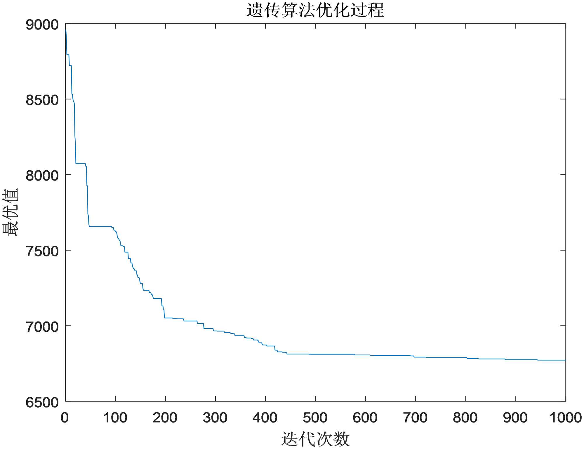 的配送成本,让配送中心有更多利润空间,则会降低客户满意度。(3) 配送总成本和碳排放量呈现正相关,碳排放量增加,配送总成本增加,说明降低配送过程的碳排放量,和降低配送总成本的目标是一致的,配送中心在优化配送路径,降低配送总成本的同时也能减少碳排放的产生。(4) 前沿点1的配送总成本最低,碳排放量也最低,但客户满意度最低,和前沿点50相比,总成本降低4026.2元,碳排放量降低925.64 kg,客户满意度降低0.09,说明为了降低配送总成本和碳排放量,会增加客户不满。(5) 前沿点50客户满意度最高,为0.99,但其配送总成本、碳排放量都最高,说明为了提高客户满意度,会增加较多的配送总成本和碳排放量。